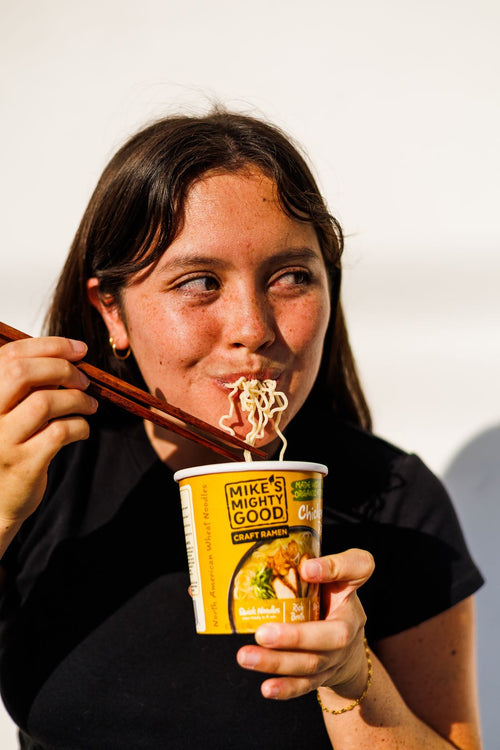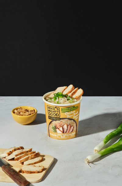 Enjoy our Chicken Bone Broth Ramen which is made with antibiotic-free chicken ingredients